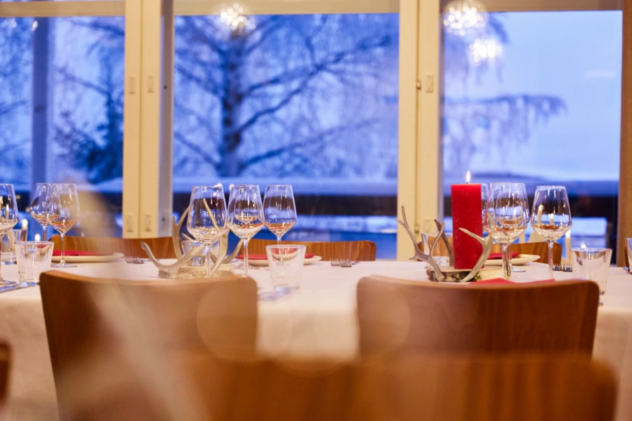 Perched on the edge of serene Lake Pöyliöjärvi, our restaurant features a sunny summer terrace ideal for uplifted dining with lake breezes and reflections on the water. Inside, thoughtfully designed interiors invite guests to linger, relax, and enjoy both casual meals and festive celebrations.